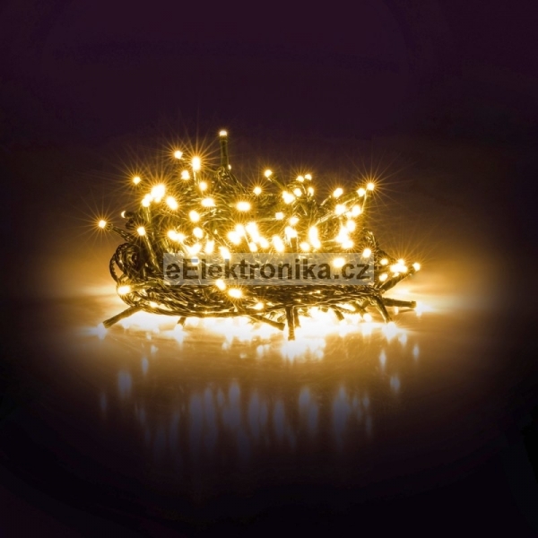 Světelný řetěz délky 5 + 5m osazený 50 svítivých LED teplé bílé barvy a s možností časovače 6/18h